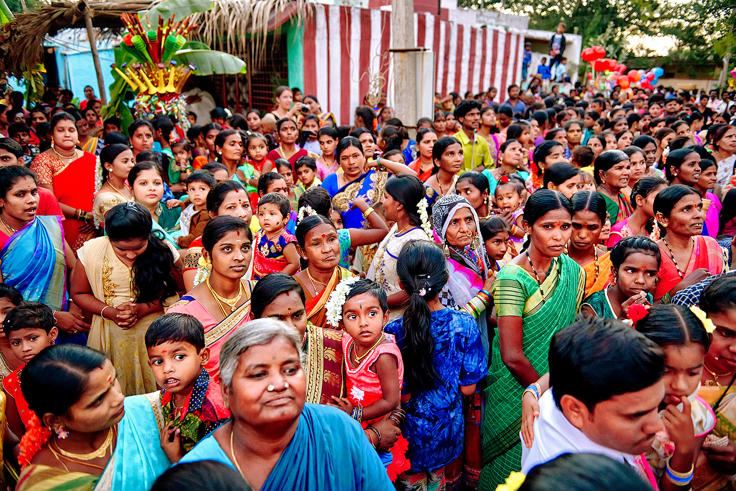 People gathered for a local festival in a village near Hampi, Karnataka, India.