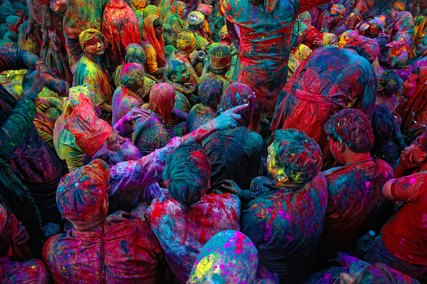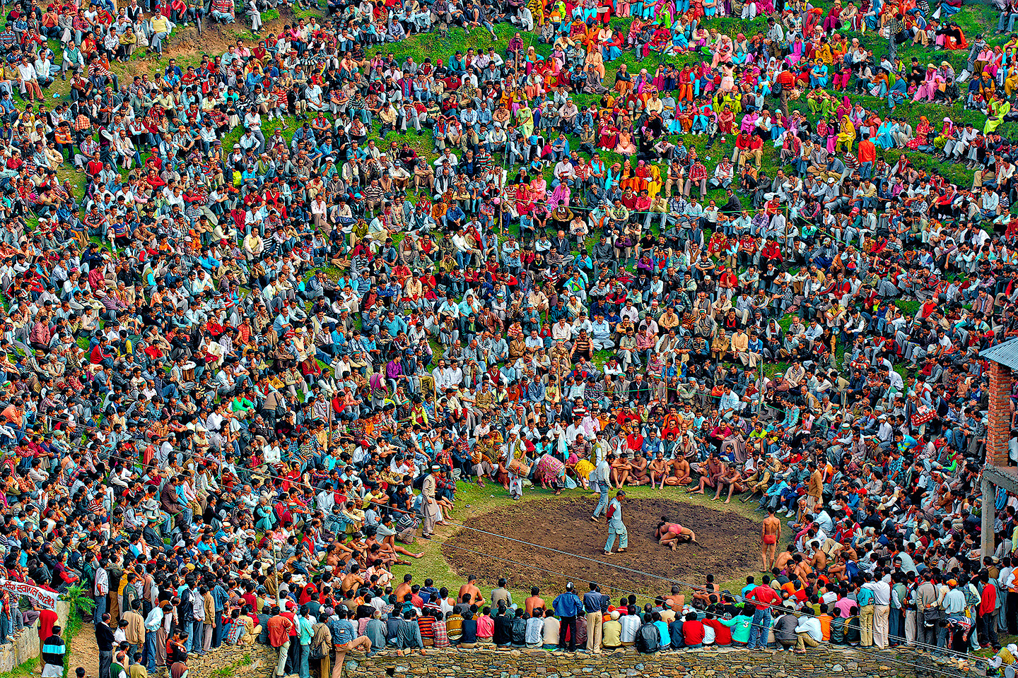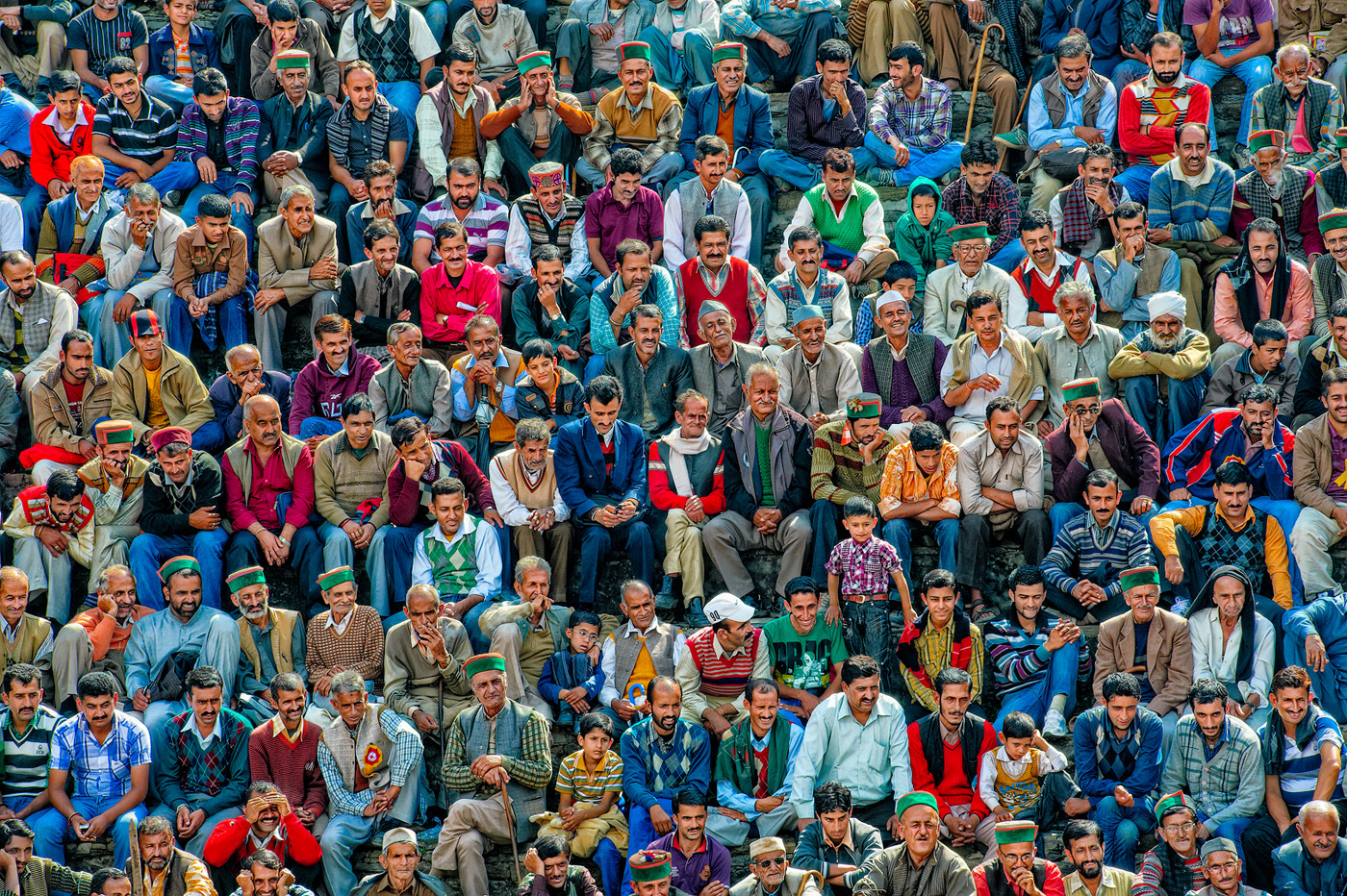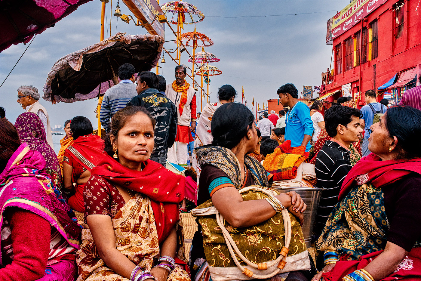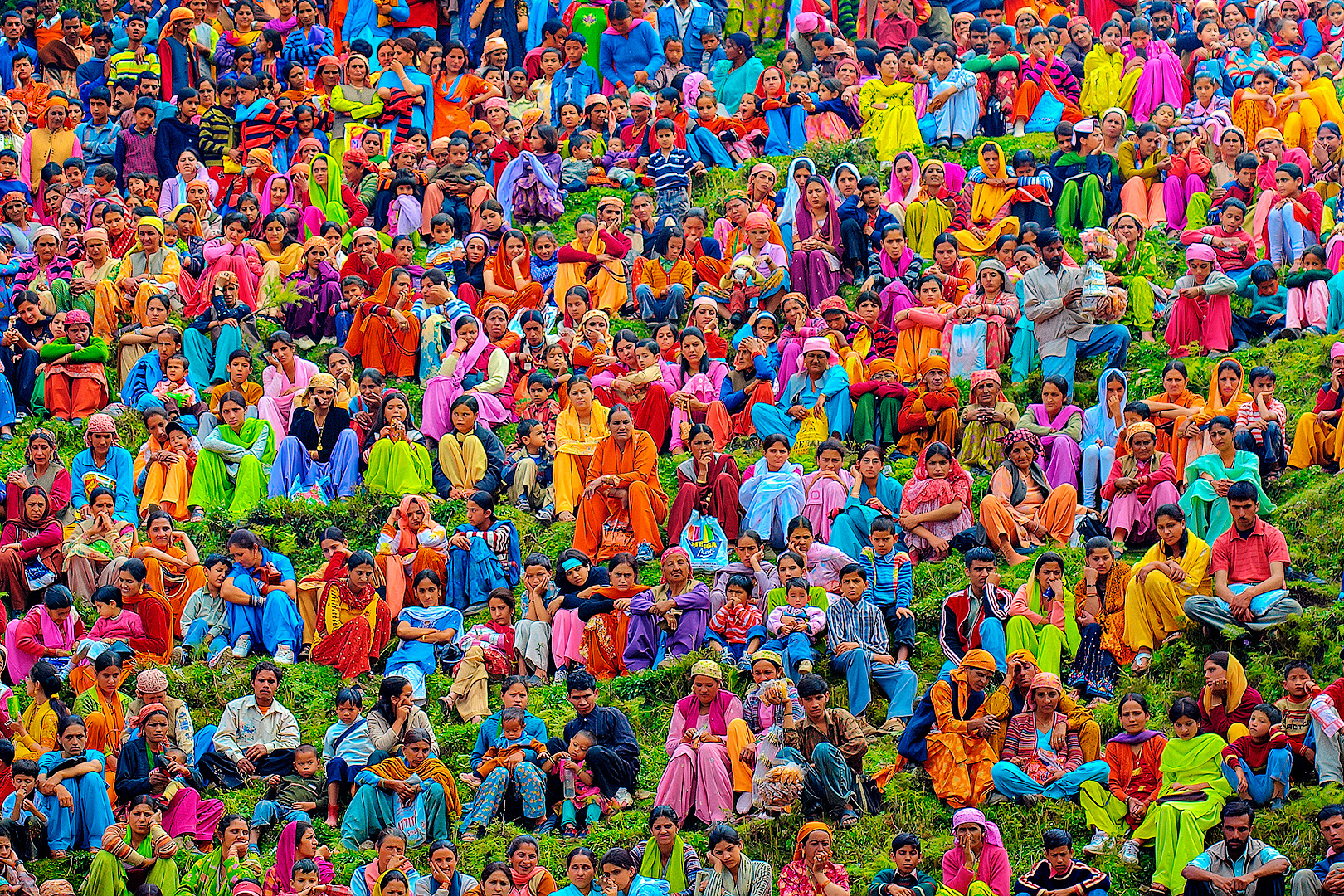 Gathering of people near the Triveni Sangam, where three rivers (Ganga, Yamuna and Saraswati) merge into one, on one of the main bathing dates (Paush Purnima) during the Kumbh Mela in Allahabad, Uttar Pradesh.