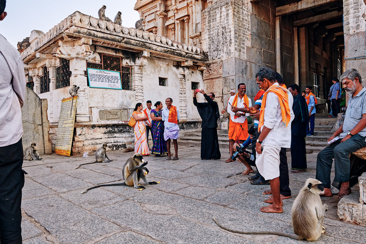 People inside the Vittala Temple in Hampi. The temple was dedicated to Vitthala, a form of Krishna and it is the most artistically sophisticated Hindu temple in Hampi