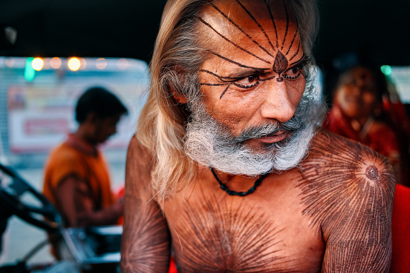 A sadhu from the state of Madhya Pradesh. He was a follower of Goddess Kali and was living in his own vehicle during the Kumbh Mela.